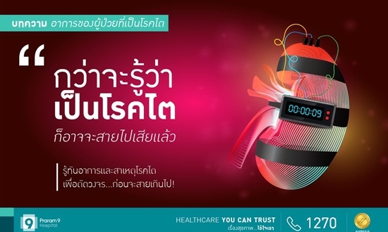 พูดคุยกับแพทย์ผู้เชี่ยวชาญพร้อมตรวจโรคไตอย่างละเอียด กับ โรงพยาบาลพระรามเก้า ได้ที่ Website: www.praram9.com / FB: Praram 9 hospital / Line: lin.ee/vR9xrQs หรือ @praram9hospital หรือโทร. 1270 โรงพยาบาลพระรามเก้า HEALTHCARE YOU CAN TRUST เรื่องสุขภาพ…ไว้ใจเรา #Praram9Hospital