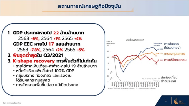 1.ก้าวสู่ปีที่ 4 อีอีซี ดึงเงินลงทุนแล้ว 1.7 ล้านล้านบาท ขับเคลื่อนไทยสู่ประเทศรายได้สูง ยกระดับชีวิตประชาชนดีขึ้น ที่ประชุม กพอ. รับทราบ ภาพรวมการดำเนินงาน ประโยชน์ประเทศและประชาชนได้รับจาก อีอีซี ดังนี้