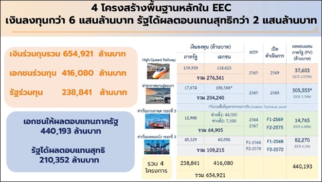 3.4 โครงสร้างพื้นฐานหลักใน EEC เงินลงทุนกว่า 6 แสนล้านบาท รัฐได้ผลสุทธิกว่า 2 แสนล้านบาท