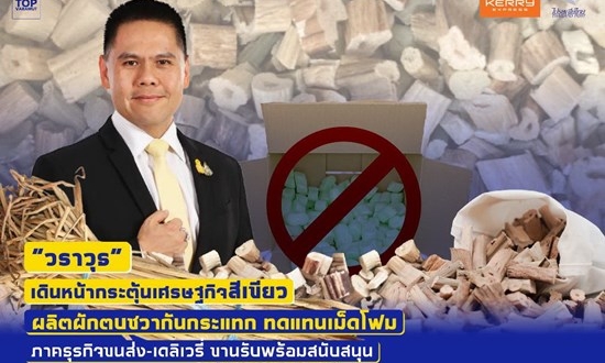 “วราวุธ” เดินหน้าเศรษฐกิจสีเขียว หนุนผลิตภัณฑ์กันกระแทกจากผักตบแทนเม็ดโฟม ไปรษณีย์-เคอร์รี่ ขานรับ/หนุนเต็มที่