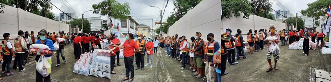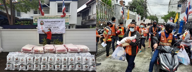 โดยครั้งนี้ได้ทำการแจกไปเป็นเกือบ 200 ชุดซึ่งในแต่ละชุดนั้นก็ประกอบด้วยข้าวสาร10 กิโลกรัม ซึ่งเป็นข้าวหอมมะลิ, น้ำปลา, น้ำพริก, หน้ากากอนามัย ข้าวมันไก่, กระดาษทิชซู่ ,ข้าวต้มมัด, น้ำดื่ม และเงินยังชีพอีกคนละ 500 บาท เพื่อให้ความช่วยเหลือผู้ที่ได้รับผลกระทบนั้นคือคำกล่าวของ นายกสมาคมเสริมสร้างครอบครัวให้อบอุ่นและเป็นสุข นางระเบียบรัตน์ พงษ์พานิช
