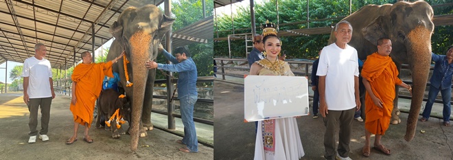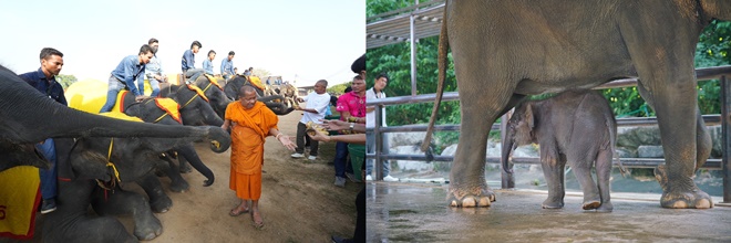 โดยวันนี้สวนนงนุชพัทยา ได้จัดขบวนนางรับและโขลงช้าง จำนวน 50 เชือก พร้อมพวงมาลัยและสายสิน คล้องพวงมาลัยและสายสิน ลงแป้งเจิมหน้าผากแม่ช้างและลูกช้างเพื่อความเป็นศิริมงคลแก่แม่และลูกช้าง พร้อมกันนี้ ท่านประสวนนงนุชพัทยา ได้ตั้งชื่อให้น้องช้าง ชื่อพังนพมาศ