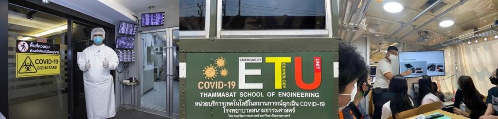 นายวัชระ กล่าวเพิ่มเติมว่า นอกจากโครงการ “ธรรมศาสตร์จิตอาสา รับสาย 1330” ขณะนี้ TSE ยังมี ‘หน่วยบริการเทคโนโลยีสารสนเทศและการสื่อสารในสถานการณ์ฉุกเฉิน คณะวิศวกรรมศาสตร์ มหาวิทยาลัยธรรมศาสตร์’ ที่จะเป็นประโยชน์ต่อการทำงานของเจ้าหน้าที่สาธารณสุข บุคลากรทางการแพทย์ โดยเทคโนโลยีดังกล่าวคือรถโมบายเคลื่อนที่ ซึ่งภายในติดตั้งระบบอินเตอร์เน็ตเพื่อการสื่อสาร ระบบการเชื่อมต่อไร้สาย และระบบเทคโนโลยีอื่น ๆ ที่สามารถเข้าไปติดตั้งระบบให้แก่โรงพยาบาล หรือฮอสพิเทล (Hospitel) ได้ทันที โดยเทคโนโลยีดังกล่าวจะเน้นการทำงานแบบไร้การสัมผัส ซึ่งจะช่วยเพิ่มประสิทธิภาพในการรักษา การวินิจฉัย ลดความเหนื่อยล้าจากการสวมชุด PPE เป็นเวลานาน และช่วยให้ทีมแพทย์ใกล้ชิดกับผู้ป่วยแบบเรียลไทม์ ด้วยระบบการติดตามอาการได้ทันทีโดยที่เจ้าหน้าที่ไม่ต้องสัมผัสผู้ป่วยโดยตรง
