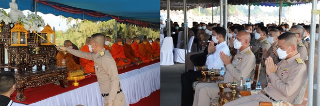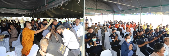 โดยมี พลเรือโทพิชัย ล้อชูสกุล ผอ.ศรชล.ภาค 1/ผบ.ทรภ.1 เป็นประธานในพิธี ร่วมกับส่วนราชการอำเภอบางสะพาน ส่วนท้องถิ่น กู้ภัย และบริษัท ท่าเรือประจวบ ซึ่งได้นิมนต์พระสงฆ์ จำนวน 10 รูปจากวัดเขาตะล่อม และวัดห้วยทรายขาว อ.บางสะพาน มาประกอบพิธีเจริญพระพุทธมนต์