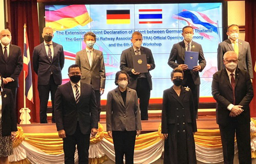 ในโอกาสการเปิดตัวสมาคมระบบรางเยอรมัน-ไทย อย่างเป็นทางการ นายศักดิ์สยาม ชิดชอบ รัฐมนตรีว่าการกระทรวงคมนาคม และพณฯ นายเกออร์ก ชมิดท์ เอกอัครราชทูตสหพันธ์สาธารณรัฐเยอรมนีประจำประเทศไทย ร่วมลงนามต่ออายุความตกลงว่าด้วยการแถลงการณ์ร่วมแสดงเจตจำนงว่าด้วยการพัฒนาความร่วมมือด้านรถไฟ (JDI) ระหว่างกระทรวงคมนาคมแห่งราชอาณาจักรไทย และกระทรวงคมนาคมและโครงสร้างพื้นฐานดิจิทัลแห่งสหพันธ์สาธารณรัฐเยอรมนี และร่วมเป็นประธานในพิธีเปิดสัมมนาทางวิชาการ GTRA Workshop ครั้งที่ 6 จัดโดยคณะวิศวกรรมศาสตร์ มหาวิทยาลัยมหิดล ในหัวข้อ “รถไฟฟ้าความเร็วสูง: โฉมใหม่ของระบบรางของประเทศไทย” ท่ามกลางผู้บริหารและบุคคลากรในอุตสาหกรรมขนส่งระบบรางภาครัฐและเอกชนมาร่วมงานคับคั่ง ณ ห้องประชุมกระทรวงคมนาคม