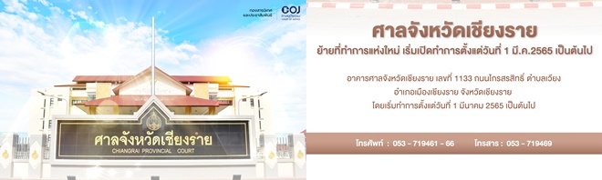 โดยเริ่มทำการตั้งแต่วันที่ 1 มีนาคม 2565 เป็นต้นไป สำหรับประชาชนที่มีอรรถคดีหรือต้องการติดต่อราชการศาลจังหวัดเชียงราย สามารถติดต่อได้ที่เบอร์โทรศัพท์ 053 – 719461 – 66 โทรสาร 053 – 719469