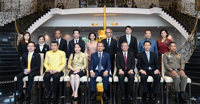 นายธีรศักดิ์ เงยวิจิตร เลขาธิการสำนักงานศาลยุติธรรม เข้าร่วมพิธีลงนามบันทึกข้อตกลงความร่วมมือการบูรณาการความร่วมมือเพื่อป้องกันการกระทำความผิดซ้ำจากผู้กระทำความผิดคดีทางเพศหรือที่ใช้ความรุนแรง ระหว่าง 6 หน่วยงาน ประกอบด้วย สำนักงานศาลยุติธรรม สำนักงานอัยการสูงสุด สำนักงานตำรวจแห่งชาติ กระทรวงมหาดไทย กระทรวงสาธารณสุข และกระทรวงยุติธรรม โดยมีวัตถุประสงค์เพื่อส่งเสริมความร่วมมือระหว่างกันในการขับเคลื่อนการดำเนินงานเพื่อป้องกันและเฝ้าระวังการก่ออาชญากรรม สร้างความปลอดภัยให้กับสังคม แก้ไขปัญหาและลดอัตราการกระทำความผิดซ้ำจากผู้กระทำความผิดคดีทางเพศ หรือที่ใช้ความรุนแรง และร่วมกันผลักดันในระดับนโยบายจนถึงระดับปฏิบัติอย่างเป็นรูปธรรม ตลอดจนร่วมกันสร้างกลไกการดำเนินงานให้มีความเหมาะสมต่อกลุ่มผู้กระทำความผิดในระดับพื้นที่อย่างเชื่อมโยงและสอดรับกับแนวนโยบายรัฐบาลและแผนยุทธศาสตร์ที่เกี่ยวข้อง เพื่อให้เกิดการดำเนินงานแบบบูรณาการอย่างมีประสิทธิภาพ บรรลุผลตามเป้าหมายที่กำหนดไว้อย่างยั่งยืน