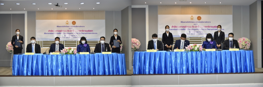 ณ ห้องประชุมใหญ่ ชั้น 12 อาคารศาลอาญา ถนนรัชดาภิเษก กรุงเทพมหานคร นายจีระพัฒน์ พันธุ์ทวี เลขาธิการสำนักงานศาลยุติธรรม และนางสาวนภาภรณ์ ใจสัจจะ เลขาธิการวุฒิสภา ร่วมลงนามบันทึกข้อตกลงความร่วมมือทางวิชาการระหว่างสำนักงานศาลยุติธรรม กับสำนักงานเลขาธิการวุฒิสภา เรื่องความร่วมมือ แลกเปลี่ยน สนับสนุนข้อมูลทางวิชาการ และพัฒนาบุคลากรทางวิชาการ