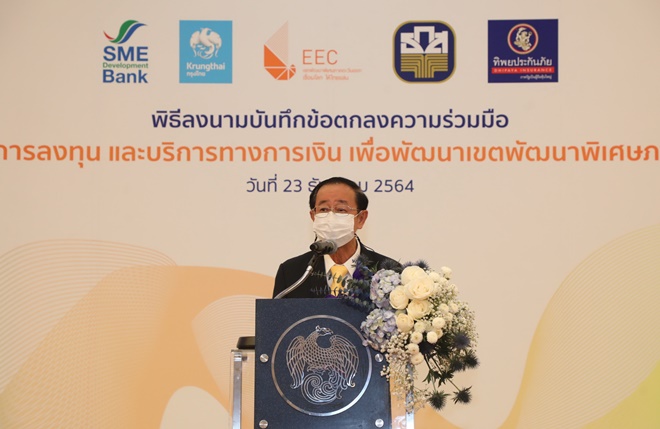 ความร่วมมือที่เกิดขึ้น ระหว่าง สกพอ. และ 4 สถาบันการเงินครั้งนี้ จะเป็นกลไกสำคัญเพื่อเร่งบรรเทาผลกระทบสถานการณ์โควิด 19 ส่งเสริมให้เกิดการพัฒนาผลิตภัณฑ์หรือบริการธุรกรรมทางการเงินประเภทต่างๆ การพัฒนานวัตกรรมใหม่ด้านการเงิน ที่พร้อมช่วยเหลือผู้ประกอบการทุกระดับในพื้นที่ อีอีซีทั้งในเรื่องสินเชื่อรูปแบบพิเศษที่เหมาะสมกับผู้ประกอบการเอสเอ็มอีในแต่ละกลุ่ม สินเชื่อเพื่อยกระดับเกษตรกรไปสู่การทำธุรกิจการเกษตร และเข้าถึงบริการประกันภัยในรูปแบบต่าง ๆ ที่เหมาะสม ลดความเสี่ยงผู้ประกอบการ รวมทั้งเพิ่มศักยภาพในการดำเนินธุรกิจให้กลุ่มผู้ประกอบการเอสเอ็มอี กลุ่มเกษตรกรและชุมชนในพื้นที่ อีอีซี เกิดความเข้มแข็งยกระดับรายได้ต่อเนื่อง เสริมสร้างเศรษฐกิจฐานรากให้มั่นคง ซึ่งจะเป็นต้นแบบเพื่อนำไปใช้พัฒนาพื้นที่อื่นๆ ทั่วประเทศต่อไปในอนาคต