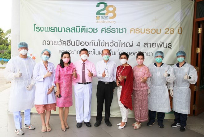“ในช่วงที่ไทยต้องเผชิญกับวิกฤติโควิด-19 โรงพยาบาลฯ ได้ร่วมมือกับภาครัฐอย่างเต็มที่ด้วยการพัฒนาบริการ COVID Drive Thru เพื่อตรวจเชื้อโควิด-19 ให้กับประชาชนได้ทราบผลอย่างรวดเร็ว โดยแยกจุดตรวจออกจากอาคารโรงพยาบาล รวมถึงจัดตั้งคลินิกระบบทางเดินหายใจและหอผู้ป่วยระบบทางเดินหายใจเพื่อดูแลผู้ป่วย และเมื่อโรงพยาบาลฯ ได้รับการจัดสรรวัคซีนจากภาครัฐก็ได้ช่วยดำเนินการฉีดวัคซีนให้กับประชาชนไปแล้วกว่า 10,000 เข็ม นอกจากนี้ ยังพร้อมเป็นศูนย์กลางในการให้บริการฉีดวัคซีนทางเลือกร่วมกับราชวิทยาลัยจุฬาภรณ์รวมถึงวัคซีนอื่นๆ ที่ได้รับการอนุมัติจาก อย. ด้วยเช่นกัน เพื่อเป็นกำลังสำคัญในการสร้างภูมิคุ้มกันหมู่ให้เกิดขึ้นในพื้นที่ภาคตะวันออกของไทย ที่ถือเป็นหนึ่งในเมืองหลักทางเศรษฐกิจทั้งด้านอุตสาหกรรม การส่งออกและการท่องเที่ยวอันเปรียบเสมือนเส้นเลือดหลักที่จะช่วยฟื้นคืนสภาพคล่องทางเศรษฐกิจของประเทศ ด้านการส่งเสริมสุขภาพที่แข็งแกร่งในชุมชนท้องถิ่นก็ถือเป็นภารกิจหลักของเราเช่นกัน โดยโรงพยาบาลฯ ได้ทำหน้าที่ในการดูแลสุขภาพของพระสงฆ์ในเขตอำเภอศรีราชาและจังหวัดชลบุรี โดยให้บริการฉีดวัคซีนไข้หวัดใหญ่และตรวจสุขภาพต่อเนื่องเป็นปีที่ 2 แด่พระสงฆ์ 288 รูปอีกด้วย” นพ. อัษฎา ตียพันธ์ กล่าวเสริม