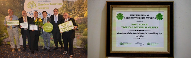 โดยนายกัมพล ตันสัจจา ประธานสวนนงนุชพัทยาได้ส่งตัวแทนเดินทางไปรับรางวัลและกล่าวว่า สวนนงนุชพัทยารู้สึกเป็นเกียรติและภูมิใจที่เป็นสวนพฤศาสตร์ในประเทศไทยที่ได้รับรางวัลระดับโลก ซึ่งมีสวนสวยมากกว่า50 สวนพร้อมกับแหล่งเรียนรู้ที่ทำให้รู้สึกชอบในเรื่องต้นไม้ เรื่องสัตว์ วัฒนธรรม ศาสนา อาหารไทย และยังมีไดโนเสาร์มากมากที่สุดในโลกสามารถทำให้เด็กชอบที่จะมา ในการพิจารณาให้รางวัลเน้นการจัดสวนที่มีเอกลักษณ์โดดเด่นมากที่สุดในโลก และรางวัลเหล่านี้เป็นตัวอย่างของการเป็นผู้นำที่แท้จริงในโลกแห่งการท่องเที่ยวสวน รางวัล ‘International Garden Tourism Awards’ มอบให้กับองค์กรและบุคคลที่มี การพัฒนาและส่งเสริมประสบการณ์ในการท่องเที่ยวสวนสามารถดึงดูดเด็กและนักท่องเที่ยวให้รู้สึกอยากเดินทางมาเยี่ยมชมได้เป็นจำนวนมากและสถานที่ท่องเที่ยวนั้นเป็นแรงจูงใจให้แก่นักเดินทางจากทั่วทุกมุมโลก