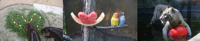 นอกจากนี้แล้ว สวนสัตว์เปิดเขาเขียวยังได้ส่งมอบความรักให้กับสัตว์ป่า ด้วยการให้อาหารที่สัตว์แต่ละชนิดชื่นชอบ เช่น ลูกบอลหรรษาสีแดงของเสือโคร่งขาว วงหญ้ารูปหัวใจให้กับฮิปโปโปเตมัส และแตงโมแกะสลัก เป็นรูหัวใจให้กับนกเลิฟเบิร์ด เป็นต้น