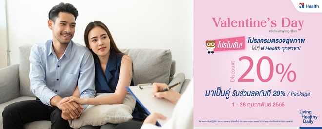 การเริ่มต้นดูแลกันอย่างเข้าใจให้ลึกซึ้งถึงสุขภาพของคนที่เราแคร์ เป็นอีกแนวทางหนึ่งที่จะถนอมความรักและความสัมพันธ์ให้เหนียวแน่นยาวนาน และลดความเสี่ยงในการทำร้ายคนที่เรารักโดยไม่รู้ตัว เพื่อเป็นการเฉลิมฉลองให้กับทุกความรักในเดือนแห่งความรัก N Health มอบส่วนลดสูงสุด 20% ในโปรแกรมตรวจสุขภาพในโปรแกรมตรวจพื้นฐาน 12 รายการ โปรแกรมตรวจสุขภาพก่อนแต่งงาน โปรแกรมตรวจหาความเสี่ยงต่อมะเร็ง รวมทั้งโปรแกรมตรวจที่สามารถมอบเป็นของขวัญให้คุณพ่อคุณแม่ได้อีกด้วย เริ่มตั้งแต่วันนี้ถึง 28 กุมภาพันธ์ 2565 ที่ N Health แล็บเซ็นเตอร์ทุกสาขาทั่วประเทศ นัดหมายล่วงหน้าเพียงอย่างน้อย 1 วัน เพื่อให้ได้รับการบริการที่สะดวกรวดเร็ว สอบถามรายละเอียดและนัดหมายได้ที่ 02-762-4000 หรือที่อีเมล customerservices@nhealth-asia.com
