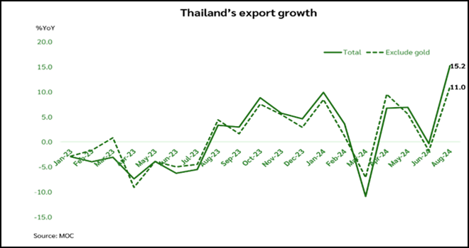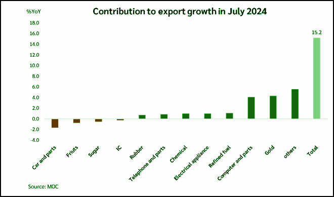 รูปที่ 1 การส่งออกไทยเดือนก.ค.67 ขยายตัวมากกว่าคาดที่ 15.2%YoY