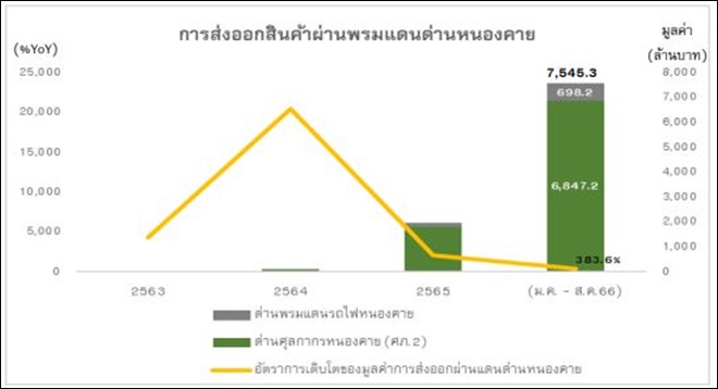 ทั้งนี้สำหรับในช่วงที่เหลือของปี 2566 จากปัจจัยด้านฐานที่ต่ำในปีก่อนหน้าจึงมีแนวโน้มที่การส่งออกของไทยจะเติบโตได้ในแดนบวก แม้ว่าจะยังคงเผชิญความไม่แน่นอนของทิศทางเศรษฐกิจโลกที่ยังคงอยู่ซึ่งอาจเข้ามาสร้างความไม่แน่นอนให้แก่การส่งออกไทย โดยแม้ความขัดแย้งระหว่างอิสราเอลและฮามาสส่งสัญญาณดีขึ้นบ้าง แต่ปัญหาภูมิรัฐศาสตร์ยังเป็นประเด็นที่ต้องติดตามอย่างต่อเนื่อง ขณะที่ดัชนีผู้จัดการฝ่ายจัดซื้อภาคการผลิต (Manufacturing PMI) ของหลายประเทศหลักยังคงสะท้อนภาพหดตัวต่อเนื่อง อย่างไรก็ตาม จากปัจจัยฐานที่ต ่า ประกอบกับช่วงปลายปีเป็นเป็นฤดูกาลส่งออกในช่วงเทศกาล จึงน่าจะประคองให้การส่งออกไทยในช่วงที่เหลือของปียังขยายตัวเป็นบวกได้ดังนั้น ศูนย์วิจัยกสิกรไทยจึงมีมุมมองว่า ภาพรวมการส่งออกของไทยทั้งปี2566 คงจะหดตัวลดลงจากที่เคยประเมินไว้ที่ -2.5%โดยอาจอยู่ในกรอบ -1.5% ถึง -1.0%สำหรับการส่งออกสินค้าเกษตรถือได้ว่าเป็ นตัวแปรสำคัญของการส่งออกของไทยในปี 2566 โดยเป็นหมวดสินค้าส่งออกเดียวที่ยังสามารถขยายตัวได้ในช่วง 10 เดือนแรกของปี 2566 โดยเฉพาะการส่งออกผลไม้สดและแช่แข็งซึ่งมีสัดส่วนคิดเป็น 2.7% ของการส่งออกของไทยทั้งหมด ขณะที่จีนเป็นตลาดที่มีความส าคัญสูงสุดเนื่องจากคิดเป็น 90% ของการส่งออกสินค้าดังกล่าวทั้งหมดของไทย ซึ่งทุเรียนถือเป็นผลไม้ที่มีศักยภาพในการส่งออกที่สุดของไทยในปีนี้ หลังปีก่อนหน้าการส่งออกผลไม้ของไทยอาจได้รับผลกระทบจากอุปสรรคทางด้านการขนส่งจากมาตรการควบคุมโควิด-19 ของจีน และปริมาณผลผลิตในปีนี้ก็มีเพียงพอที่จะตอบสนองความต้องการของตลาด ทั้งนี้ ในปี2567 การส่งออกผลไม้ไทยไปจีนยังมีโอกาสที่จะขยายตัวได้จากความต้องการสินค้าในตลาดดังกล่าวที่คาดว่ายังคงมีอยู่ ขณะที่ระบบขนส่งผ่านรถไฟไทย-ลาว-จีน จะเข้ามาเป็นอีกทางเลือกหนึ่ง ที่ช่วยให้การส่งออกสินค้าเกษตรไทยไปจีนมีประสิทธิภาพและรวดเร็วมากขึ้น โดยตัวเลขมูลค่าการส่งออกผ่านแดนทางด่านหนองคายเพิ่มขึ้นอย่างมีนัยสำคัญ หลังเส้นทางดังกล่าวเปิดใช้งานเมื่อช่วงปลายปี 2564 ซึ่งในปี 2566 การส่งออกสินค้าผ่านเส้นทางดังกล่าวเกือบทั้งหมดเป็นการส่งออกผลไม้สดและแช่แข็ง แต่การส่งออกผลไม้ผ่านเส้นทางนี้คิดเป็นเพียง 4% เมื่อเทียบกับการส่งออกผลไม้ทั้งหมดของไทยไปจีน