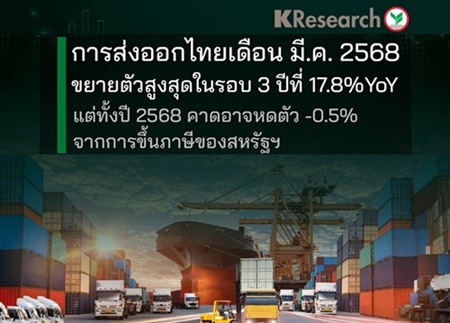 ศูนย์วิจัยกสิกรไทยปรับลดประมาณการส่งออกไทยในปี 2568 หดตัว -0.5% จากก่อนหน้าที่ประเมินไว้อาจขยายตัวที่ 2.5%