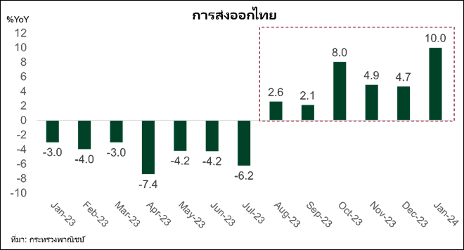 ส่งออกไทย ม.ค. 67 โตพรวด 10% พุ่งสุดในรอบ 18 เดือน แม้”ทะเลแดง”เดือดปุด