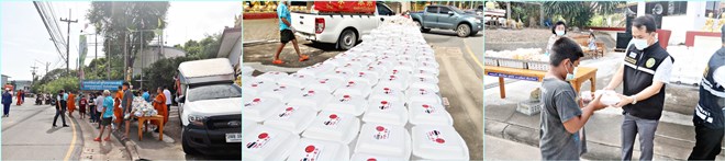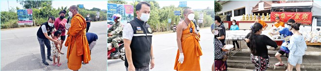 จากใจหนุ่มชาวจีน นำข้าวกล่องที่มีสติกเกอร์  เป็นสัญลักษณ์ ธงไทยและธงจีน พร้อมข้อความ ประเทศไทยสู้ๆ มาสมทบช่วยเหลือประชาชาชน เป็นกำลังใจให้คนไทยก้าวผ่านวิกฤตโควิด 19 ที่บริเวณ หน้าวัด สามัคคีบรรพต (วัดบางเสร่นอก) ต.บางเสร่ อ.สัตหีบ จ.ชลบุรี  โดยมี พระครูเกษม กิตติโสภณ เจ้าอาวาสวัดสามัคคีบรรพต (อาจารย์จ่อย) ร่วมกับ นางวิภาดา ขะตะเจริญ ที่ปรึกษากิ่งกาชาดอำเภอสัตหีบ พร้อมทั้งศิษย์ยานุศิษย์และผู้มีจิตศรัทธา ร่วมบริจาคและทำอาหารกล่อง พร้อมขนม ถุงยังชีพ แจกให้กับชาวบ้านที่เดือดร้อน จากผลกระทบโควิด19 ได้นำกลับไปรับประทานที่บ้าน บรรเทาค่าใช้จ่ายในครัวเรือน