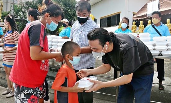 หนุ่มจีนหัวใจไทย ร่วมแจกข้าวกล่องให้ประชาชน หน้าวัดสามัคคีบรรพต