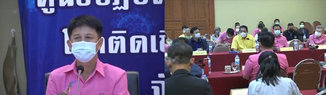 ที่ห้องประชุมสุดสุข ชั้น 5 อาคารชลนุสรณ์ 100 ปี สำนักงานสาธารณสุข จังหวัดชลบุรี นายภัครธรณ์ เทียนไชย ผู้ว่าราชการจังหวัดชลบุรี เป็นประธานในการประชุมคณะกรรมการโรคติดต่อ จ.ชลบุรี เกี่ยวกับมาตรการคุมเข้มการแพร่ระบาดไวรัสโควิด-19 โดยมีหน่วยงานที่เกี่ยวข้องเข้าร่วมประชุมอย่างพร้อมเพียง
