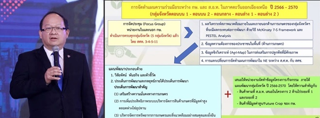 อีกทั้งที่ประชุม ได้รับทราบผลการดำเนินงานของคณะอนุกรรมการความร่วมมือระหว่างกระทรวงเกษตรและสหกรณ์ และสภาอุตสาหกรรมแห่งประเทศไทย(กรกอ.ภาค)ได้แก่ภาคเหนือ ภาคกลาง ภาคใต้ ภาคตะวันออกเฉียงเหนือและภาคตะวันออกในการจัดทำแผนพัฒนาสินค้าเกษตรอุตสาหกรรมและอาหารปี 2566 – 2570 ตามศักยภาพแบบครบวงจรให้แล้วเสร็จภายในกันยายนปีนี้ เพื่อประกาศแผนพร้อมกับแผนพัฒนาเศรษฐกิจและสังคมแห่งชาติฉบับที่13
