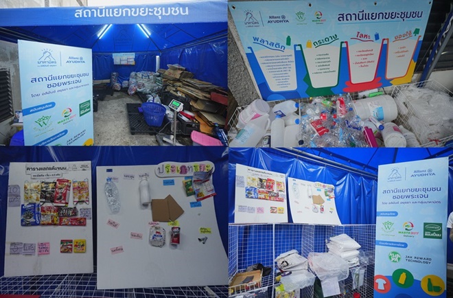 1.สถานีแยกขยะ พื้นที่สำหรับเป็นศูนย์กลางในการพักและรวบรวมขยะที่ได้รับการคัดแยก สนับสนุน โดย อลิอันซ์ อยุธยา