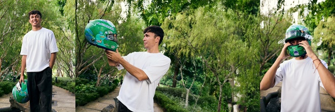 หมวกกันน็อกใบนี้ออกแบบโดยคาร์ลอตตา เฟรเออร์ (Karlotta Freier) ถ่ายทอดแรงบันดาลใจจากลวดลายไทยและเอเชียที่สะท้อนถึงภูมิลำเนาของอัลบอนในเอเชียตะวันออกเฉียงใต้ โดยเขาจะสวมใส่หมวกใบดังกล่าวลงแข่งขันในรายการ สิงคโปร์กรังด์ปรีซ์ ระหว่างวันที่ 3–5 ตุลาคม 2568