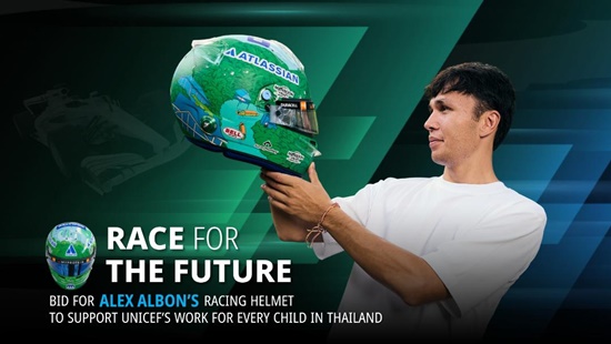 อเล็กซ์ อัลบอน อังศุสิงห์ นักแข่งรถฟอร์มูล่าวันชาวไทยเพียงหนึ่งเดียวในปัจจุบัน มอบหมวกกันน็อกที่ออกแบบขึ้นเป็นพิเศษสำหรับการแข่งขันสิงคโปร์กรังด์ปรีซ์ 2025 เพื่อนำออกประมูลการกุศล สนับสนุนงานของยูนิเซฟ ประเทศไทย โดยรายได้ทั้งหมดจะนำไปช่วยพัฒนาคุณภาพชีวิตของเด็กที่ขาดโอกาสทั่วประเทศ