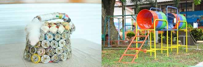 ความร่วมมือกับคณะพาณิชยนาวีนานาชาติ มหาวิทยาลัยเกษตรศาสตร์ วิทยาเขตศรีราชา ในครั้งนี้ ทำให้เกิดงานสร้างสรรค์สิ่งประดิษฐ์และงานฝีมือมากกว่า 50 ชิ้น โดยทั้งหมดทำมาจากวัสดุเหลือใช้ชนิดต่าง ๆ ได้แก่ พลาสติก กระดาษ แก้ว โลหะ ไม้ ยาง เสื้อผ้า และวัสดุอื่น ๆ ที่มาจากการรวบรวมภายในพื้นที่ปฏิบัติงานของ HPT และมหาวิทยาลัยเกษตรศาสตร์ฯ รวมทั้งชุมชนละแวกใกล้เคียง และพันธมิตรทางธุรกิจ เมื่อขยะได้ถูกรวบรวมมาเรียบร้อย จะถูกนำไปคัดแยก ณ สำนักงานของ HPT มหาวิทยาลัยเกษตรศาสตร์ฯ และสถานที่ซึ่งรองรับการคัดแยกขยะที่โครงการกำหนดไว้