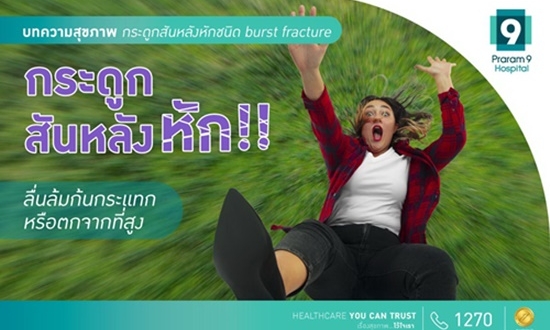 ผศ.นพ.ศุภกิจ พิมลธเรศ หัวหน้าศูนย์กระดูกสันหลัง โรงพยาบาลพระรามเก้า เผยว่า โดยทั่วไปแล้ว อาการ Burst Fracture หรือกระดูกสันหลังแตกหัก มักมาจากอุบัติเหตุล้มก้นกระแทก ตกจากที่สูง รวมถึงการบาดเจ็บจากอุบัติเหตุรถยนต์หรือจักรยานยนต์ หรือในกรณีผู้สูงอายุที่มีภาวะกระดูกพรุน (Osteoporosis) การแตกหักส่วนใหญ่มักพบว่าเกิดในตำแหน่งรอยต่อระหว่างกระดูกสันหลังส่วนอกและเอว ซึ่งส่วนใหญ่เกิดจากสาเหตุลื่นล้มก้นกระแทกพื้น