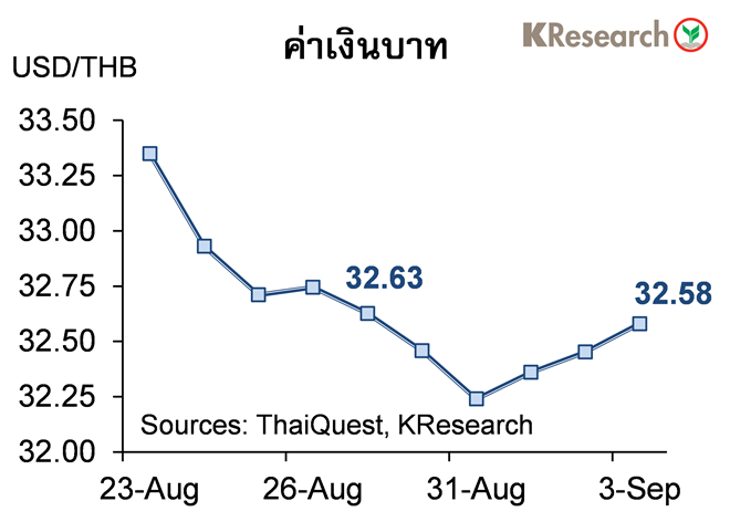 ในวันศุกร์ (3 ก.ย.) เงินบาทอยู่ที่ระดับ 32.58 บาทต่อดอลลาร์ฯ เทียบกับระดับ 32.63 บาทต่อดอลลาร์ฯ ในวันศุกร์ก่อนหน้า (27 ส.ค.)