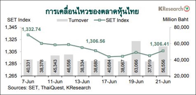 • สัปดาห์ถัดไป (24-28 มิ.ย.) บริษัทหลักทรัพย์กสิกรไทย จำกัด มองว่า ดัชนีหุ้นไทยมีแนวรับที่ 1,295 และ 1,280 จุด ขณะที่แนวต้านอยู่ที่ 1,315 และ 1,330 จุด ตามลำดับ โดยศูนย์วิจัยกสิกรไทยประเมินปัจจัยสำคัญที่ต้องติดตาม ได้แก่ รายละเอียดของมาตรการกระตุ้นเศรษฐกิจและมาตรการขับเคลื่อนตลาดทุนของภาครัฐ ถ้อยแถลงของเจ้าหน้าที่เฟด ประเด็นการเมืองในประเทศและทิศทางเงินทุนต่างชาติ ส่วนข้อมูลเศรษฐกิจสหรัฐฯ ที่สำคัญ ได้แก่ ยอดขายบ้านใหม่ ยอดสั่งซื้อสินค้าคงทน รายได้และรายจ่ายส่วนบุคคล และดัชนีราคา PCE/Core PCE เดือนพ.ค. ตัวเลขจีดีพีไตรมาส 1/2567 รวมถึงจำนวนผู้ขอรับสวัสดิการว่างงานรายสัปดาห์ ขณะที่ปัจจัยเศรษฐกิจต่างประเทศอื่นๆ ได้แก่ กำไรบริษัทภาคอุตสาหกรรมเดือนพ.ค.ของจีน ยอดค้าปลีกและผลผลิตภาคอุตสาหกรรมเดือนพ.ค. ของญี่ปุ่น ตลอดจนดัชนีความเชื่อมั่นและตัวเลขการคาดการณ์เงินเฟ้อของผู้บริโภคเดือนมิ.ย.ของยูโรโซน