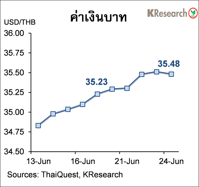 • เงินบาทแตะระดับอ่อนค่าสุดในรอบ 5 ปีครึ่ง ท่ามกลางการคาดการณ์ว่า วัฏจักรการปรับขึ้นดอกเบี้ยของไทยน่าจะตามหลังการปรับขึ้นดอกเบี้ยของสหรัฐฯ อยู่พอสมควร