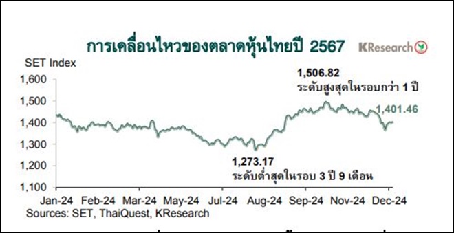หุ้นไทยยืนเหนือ 1,400 จุดได้ช่วงท้ายปี 2567