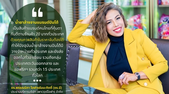 ดร.พรรณนิภา โอฬารธัมมะกิตติ์ (ดร.บี) ประธานบริหารบริษัท เพาเวอร์โอฬาร จำกัด และ บริษัทในเครือ เจ้าของแบรนด์น้ำยาล้างจาน “ปินโต้” และทิชชู่แบรนด์ “วีวี่” สินค้าอันดับ 1 ที่ครองใจผู้บริโภคมายาวนานกว่า 15 ปี มาตรฐานการผลิตระดับสากล ที่เน้นคุณภาพของสินค้าในราคาประหยัด กับสโลแกน “สินค้าคุณภาพคู่คุณธรรม” เปิดเผยว่า น้ำยาล้างจานแบรนด์ปินโต้ เป็นสินค้าแบรนด์คนไทยที่คุ้นตากันดีตามร้านค้า 20 บาททั่วประเทศ ซึ่งต้องบอกว่าเป็นน้ำยาล้างจานคุณภาพสูงในราคาถูก ผ่านกระบวนการผลิตที่ใส่ใจคุณภาพจากโรงงานมาตรฐานระดับสากล และยังได้รับรางวัลการรันตีคุณภาพอีกมากมาย ทำให้ผู้บริโภคมั่นใจในน้ำยาล้างจานปินโต้ และได้รับการตอบรับที่ดีเสมอมา ปัจจุบันปินโตมีหลากหลายกลิ่นและหลายขนาดให้เลือกใช้ เพื่อตอบโจทย์ทุกการใช้งานของผู้บริโภค ทั้งขนาดบรรจุแบบขวดและแบบซองเติมสำหรับใช้ในครัวเรือน ร้านอาหาร โรงแรม และภาคอุตสาหกรรม มีให้เลือกถึง 6 กลิ่น ได้แก่ กลิ่นมะนาว ส้ม สตรอเบอรี่ กีวี่ ลิ้นจี่มะนาว และแอปเปิ้ลอโลเวร่า เพื่อตอบสนองความต้องการของทุกกลุ่มเป้าหมาย