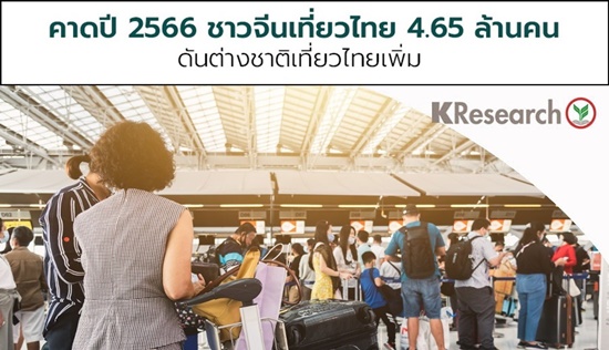 จากการคาดการณ์ตลาดจีนเที่ยวไทยที่มาได้เร็วกว่าคาด ศูนย์วิจัยกสิกรไทยจึงปรับประมาณการนักท่องเที่ยวต่างชาติเที่ยวไทยในปี 2566 เป็น 25.5 ล้านคน (กรอบ 24-26 ล้านคน) ซึ่งจะสร้างเม็ดเงินสู่ธุรกิจท่องเที่ยวและเกี่ยวเนื่องราว 1.07 ล้านล้านบาท