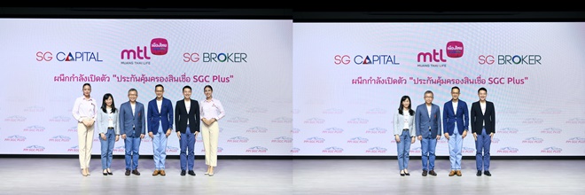 บริษัท เมืองไทยประกันชีวิต จำกัด (มหาชน) ร่วมกับ บริษัท เอสจี แคปปิตอล จำกัด (มหาชน) หรือ SGC เปิดตัวผลิตภัณฑ์ประกันชีวิตคุ้มครองสินเชื่อ “SGC Plus” เอาใจลูกค้าสินเชื่อรถทำเงิน เพิ่มทางเลือกในการสร้างความอุ่นใจ หมดความกังวัลหากเกิดเหตุไม่คาดฝัน ตอบโจทย์ครบทั้งความคุ้มครองชีวิตและอุบัติเหตุ