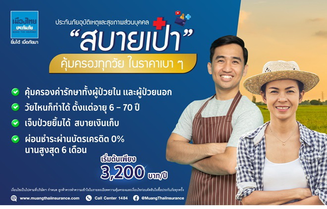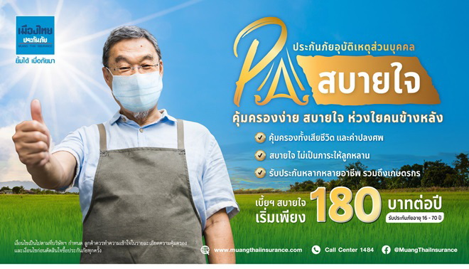 เมืองไทยประกันภัย ออกผลิตภัณฑ์ประกันภัยอุบัติเหตุและสุขภาพส่วนบุคคล 3 โปรดักส์ ได้แก่ ประกันภัยอุบัติเหตุและสุขภาพ ‘สินเชื่อสบายใจ’, ประกันภัยอุบัติเหตุและสุขภาพส่วนบุคคล ‘สบายเป๋า’ (Health สบายเป๋า) และ ประกันภัยอุบัติเหตุส่วนบุคคล ‘สบายใจ’ (PA สบายใจ) กับเบี้ยประกันภัยราคาเบาๆ ให้ความคุ้มครองทุกวัย รองรับตลาดลูกค้ารายย่อยในพื้นที่ปริมณฑลและต่างจังหวัดโดยเฉพาะ ซื้อง่ายผ่านตัวแทนใกล้บ้านท่าน หรือ Line: @mtifriend