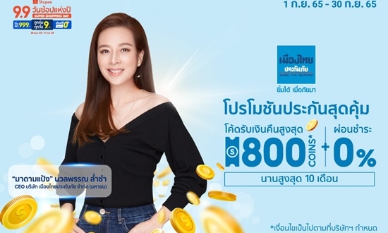เมืองไทยประกันภัย หรือ MTI ส่งแคมเปญ โปรโมชันดีลดีประกันภัยสุดคุ้มในแคมเปญ 9.9 วันช้อปแห่งปี Super Shopping Day บนแอปช้อปปี้ที่เดียวให้ลูกค้ารับโปรดีลดี แจก Coins คืนสูงสุด 800 Shopee Coins