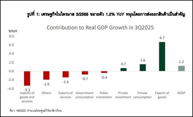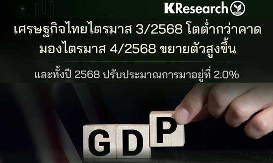 เศรษฐกิจไทยไตรมาส 3 โตต่ำเกินคาด  จับตาไตรมาส 4 ขยายตัวสูงขึ้น คาดทั้งปี 2568 โตได้ 2.0%