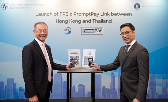 ธนาคารกลางฮ่องกง (Hong Kong Monetary Authority: HKMA) และธนาคารแห่งประเทศไทย (ธปท.) ได้เปิดตัวการให้บริการชำระเงินข้ามพรมแดนผ่าน QR ระหว่างฮ่องกงและประเทศไทย ซึ่งจะช่วยให้ผู้ที่เดินทางระหว่างฮ่องกงและประเทศไทยได้รับบริการชำระเงินที่รวดเร็ว ปลอดภัย และเข้าถึงได้ง่าย