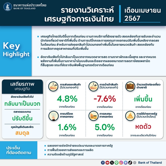 เศรษฐกิจและการเงินเดือนเมษายน 2567