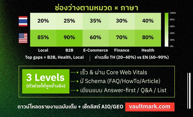 ธุรกิจที่สนใจสามารถเข้ารับการตรวจฟรีได้ที่: https://vaultmark.com/th/seo/geo-audit/
