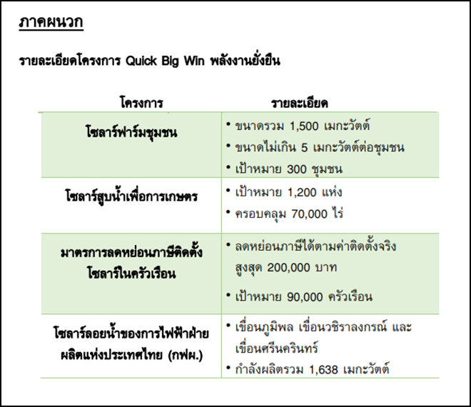 โครงการ  Quick Big Win พลังงานยั่งยืน