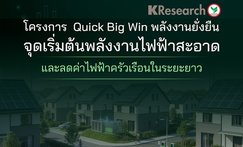 โครงการ  Quick Big Win พลังงานยั่งยืน จุดเริ่มต้นพลังงานไฟฟ้าสะอาด และลดค่าไฟครัวเรือนในระยะยาว