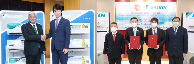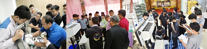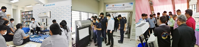 ไดกิ้น (Daikin) หนึ่งในบริษัทเครื่องปรับอากาศชั้นนำของโลก คืออีกหนึ่งภาคธุรกิจที่พยายามผลักดันการพัฒนาทักษะของบุคลากรด้านเครื่องปรับอากาศมาโดยตลอด โดยไดกิ้นไม่เพียงแต่จะให้ความสำคัญกับกลุ่มช่างแอร์เท่านั้น แต่รวมไปถึงบุคลากรด้านการศึกษาด้วย ซึ่ง “ไดกิ้น” ร่วมกับ สำนักงานคณะกรรมการการอาชีวศึกษา พัฒนาให้ความรู้แก่ ‘ครู-อาจารย์’ ผู้ถ่ายทอดความรู้ความสามารถไปสู่ช่างรุ่นถัดไป และ ‘นักเรียน-นักศึกษา’ กลุ่มที่จะกลายมาเป็นผู้เชี่ยวชาญเครื่องปรับอากาศในอนาคตอีกด้วย