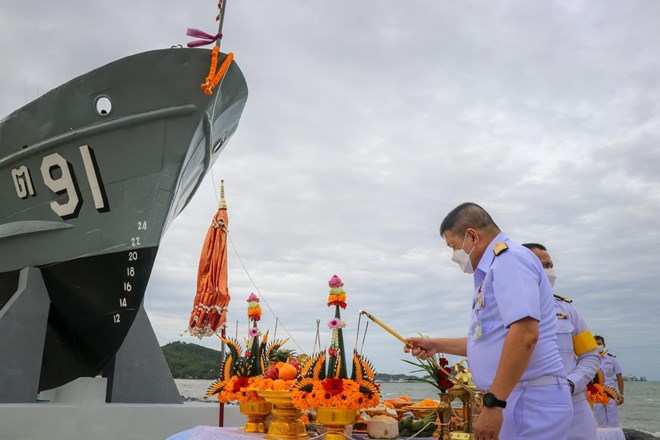 โดยจัดให้มีพิธีบวงสรวงสิ่งศักดิ์สิทธิ์ ในพื้นที่กองเรือยุทธการ , พิธีไหว้แม่ย่านาง เรือ ต.91 และพิธีบวงสรวงเทวดาบูชาฤกษ์ ตั้งแต่เวลา 09.19 น. เป็นไปตามประเพณีของชาวเรือ เพื่อความเป็นสิริมงคล และ พิธีมังคลาภิเษก ตั้งแต่เวลา 17.29 น. โดยมีพระสงฆ์ จำนวน 10 รูป สวดชัยมงคลคาถา และพิธีพราหมณ์ ต่อมา พระเกจิเถราจารย์หลัก ประจำอาสนะปรก จำนวน 5 รูป ประกอบด้วย