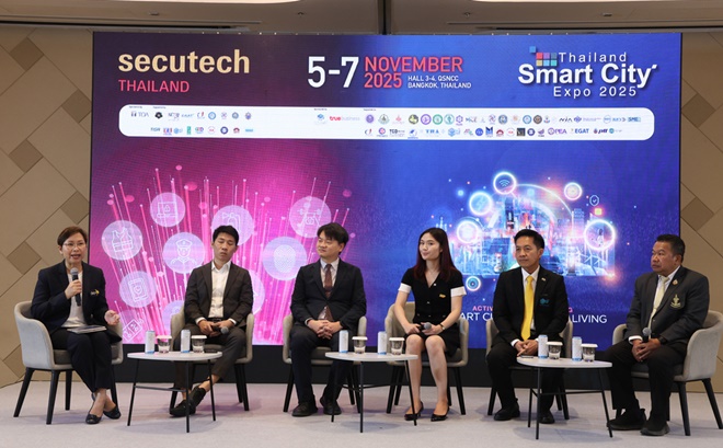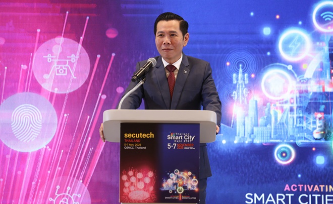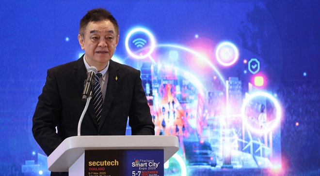 ผศ.ดร.ณัฐพล นิมมานพัชรินทร์ ผู้อำนวยการใหญ่ สำนักงานส่งเสริมเศรษฐกิจดิจิทัล หรือ ดีป้า พร้อมด้วย นายศักดิ์ชัย ภัทรปรีชากุล กรรมการบริหาร บริษัท เอ็น.ซี.ซี. แมนเนจเม้นท์ แอนด์ ดิเวลลอปเม้นท์ จำกัด และ มร.อิสราเอล โกโกล ผู้จัดการกลุ่ม บริษัท เมสเซ่ แฟรงค์เฟิร์ต (ฮ่องกง) จำกัด สาขาไต้หวัน ร่วมแถลงข่าวความพร้อมการจัดงาน ‘Thailand Smart City Expo 2025’ มหกรรมแสดงเทคโนโลยีและนวัตกรรมดิจิทัลเพื่อการพัฒนาเมืองอัจฉริยะ ที่มาพร้อมแนวคิด Activating Smart Cities, Elevating Smart Living: การพัฒนาเมืองอัจฉริยะ เพื่อยกระดับคุณภาพชีวิตของประชาชนอย่างยั่งยืน และงาน ‘Secutech Thailand 2025’ งานแสดงเทคโนโลยีระบบความปลอดภัยและการป้องกันอัคคีภัย ซึ่งทั้งสองงานจะมีขึ้นระหว่างวันที่ 5 – 7 พฤศจิกายนนี้ที่ศูนย์การประชุมแห่งชาติสิริกิติ์
