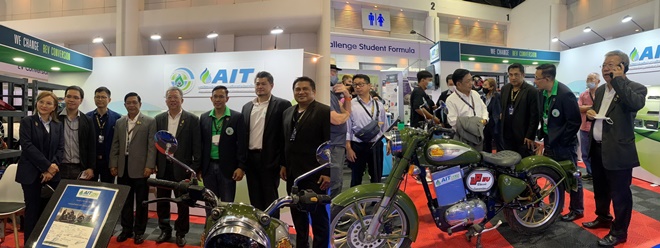 ภายในบูธ AIT R&D –มูลนิธิสถาบันพลังงานทางเลือกแห่งประเทศไทย ได้นำเทคโนโลยีการเปลี่ยนแปลงรถเครื่องยนต์สันดาปมาเป็นรถไฟฟ้า พร้อมทั้งชิ้นส่วนประกอบสำคัญต่าง ๆ มาสาธิตให้ผู้สนใจ โดยมีวิทยากรนักวิจัยจากทาง AIT R&D –มูลนิธิสถาบันพลังงานทางเลือกแห่งประเทศไทย พร้อมให้คำแนะนำอย่างใกล้ชิด เพื่อเป็นการสร้างการเรียนรู้ใหม่ในโลกยานยนต์ที่กำลังเปลี่ยนแปลงไปสู่การขับเคลื่อนด้วยพลังงานสะอาดยานยนต์ไฟฟ้ากำลังเป็นกระแสการขับเคลื่อนสู่โลกพลังงานสะอาดในปัจจุบัน ทั้งรถมอเตอร์ไซค์ รถยนต์ รถขนส่งสาธารณะ ทาง AIT R&D –มูลนิธิสถาบันพลังงานทางเลือกแห่งประเทศไทย มีความเชื่อมั่นในศักยภาพของคนไทยในพลังฝีมือทักษะเชิงช่างอุตสาหกรรม หากมีความเข้าใจที่ถูกต้องจะสามารถต่อยอดพัฒนาเทคโนโลยีการดัดแปลง BEV Conversion เปลี่ยนยานยนต์สันดาปมาเป็นพลังงานไฟฟ้า เพื่อเติมประสบการณ์ครบทุกสีสันให้โลกได้สดใส พร้อมทั้งจะเป็นการทำงานวิจัยคู่ขนานร่วมไปกับนโยบายภาครัฐในส่วนพลังงานทางเลือกของประเทศไทย ซึ่งจะเป็นการยกระดับประเทศไทยให้สู่สังคมใหม่ New S-Curve ได้รวดเร็วขึ้น