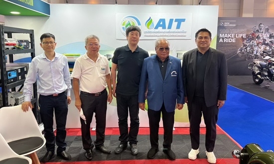 นายสุเมฆ ปัณฑรานุวงศ์ ประธานกรรมการบริหาร,นายธิบดี หาญประเสริฐ รองประธานกรรมการ,นายพัฒนา ทิวะพันธ์ เลขาธิการมูลนิธิฯ และคณะกรรมการบริหารมูลนิธิฯ พร้อมนายพุทธชาติ ช่วยราม หัวหน้าคณะทีมงานวิจัยพัฒนาAIT R&D ได้ให้การต้อนรับ ดร.ปราจีน เอี่ยมลำเนา ประธานจัดงานบางกอก อินเตอร์เนชั่นแนล มอเตอร์โชว์ ,นายอลงกรณ์ พลบุตร ผู้ก่อตั้งมูลนิธิฯและประธานที่ปรึกษา,Mr.Lin Feng ประธานบริหาร Zhejiang Qima Technology ผู้ผลิตชิ้นส่วนยานยนต์ไฟฟ้าในประเทศไทย ที่ได้ให้เกียรติเดินทางมาเยี่ยมชมบูธ AIT R&D –มูลนิธิสถาบันพลังงานทางเลือกแห่งประเทศไทย